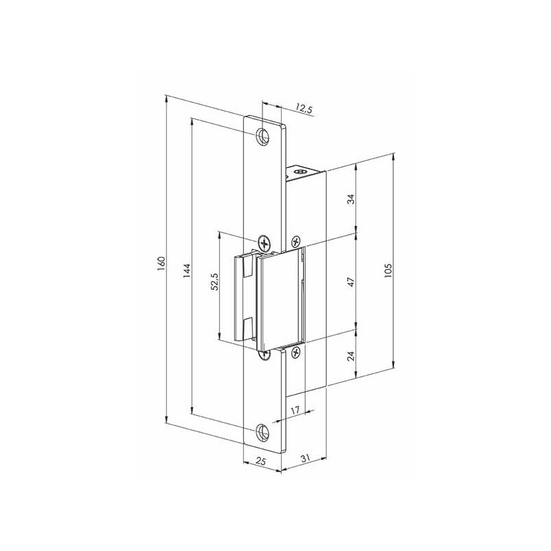 Spezieller Elektro-Türöffner für Glastüren mit einer Dicke von bis zu 10 mm. Aufgrund seiner speziellen Konstruktion ist es möglich, es in einem horizontalen oder vertikalen Teil der Struktur zu montieren, der eine Glastür trägt. Dieser Elektro-Türöffner zeichnet sich dementsprechend durch eine hochpräzise Verarbeitung aus, da er für Glastüren vorgesehen ist, bei denen fast keine Abweichungen auftreten.