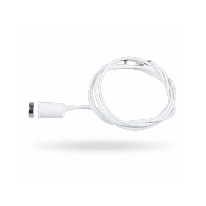 Einsteckbarer Miniaturmelder mit Kabel EXTRA FLACH Ø 9 mm, Länge des Magnets 3 mm, des Relais 14 mm, Arbeitsabstand max. 19mm, weiße Ausführung