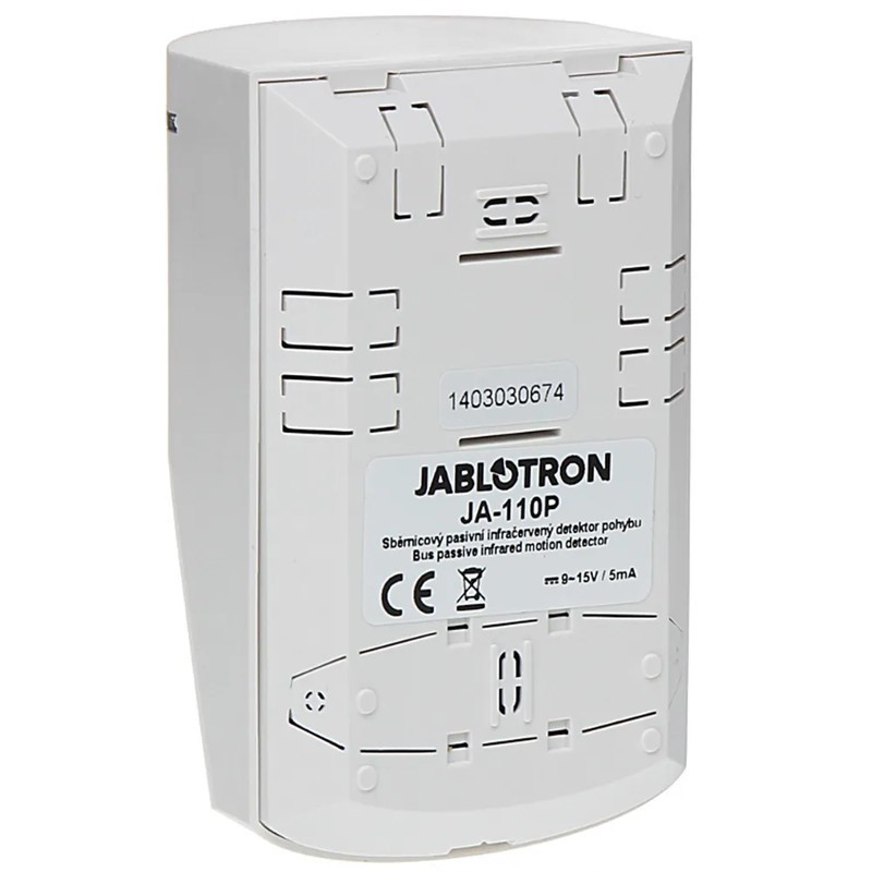 JA-110P je PIR detektor pokreta koji je namjenjen za zaštitu interijera. Otkriva kretanje toplog tijela u prostoru. Karakteristika detekcije može se optimizirati pomoću alternativnih leća JS-7904 (za dugački hodnik), JS-7906 (neosjetljivost na kućne ljubimce) ili JS-7901 (zavjesa). Razina imuniteta se može odabrati na dvije razine. Funkcija memorije alarma (SMI) je opcionalna i omogućuje jednostavno pronalaženje mjesta alarma.