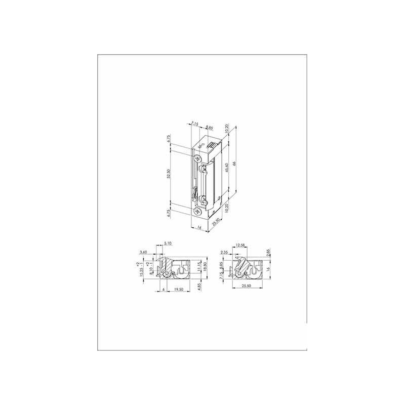 Mini elektroprihvatnik, serija Symmetric, pogodan i za lijeva i za desna vrata.Kučište izrađeno od nehrđajućeg čelika. Bez struje otvoren. Ima mehaničku kočnicu.