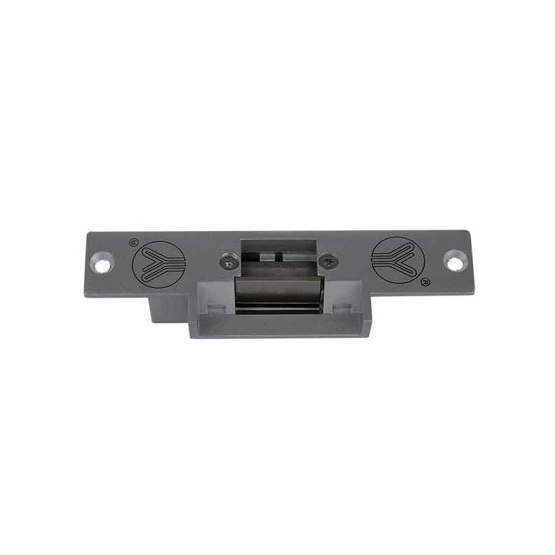 Elektroprihvatnik sa pločom za metalna vrata. Pogodan za lijeva i desna vrata. Kučište izgrađeno od nehrđajućeg čelika. Bez struje otvoren. 12 VDC
